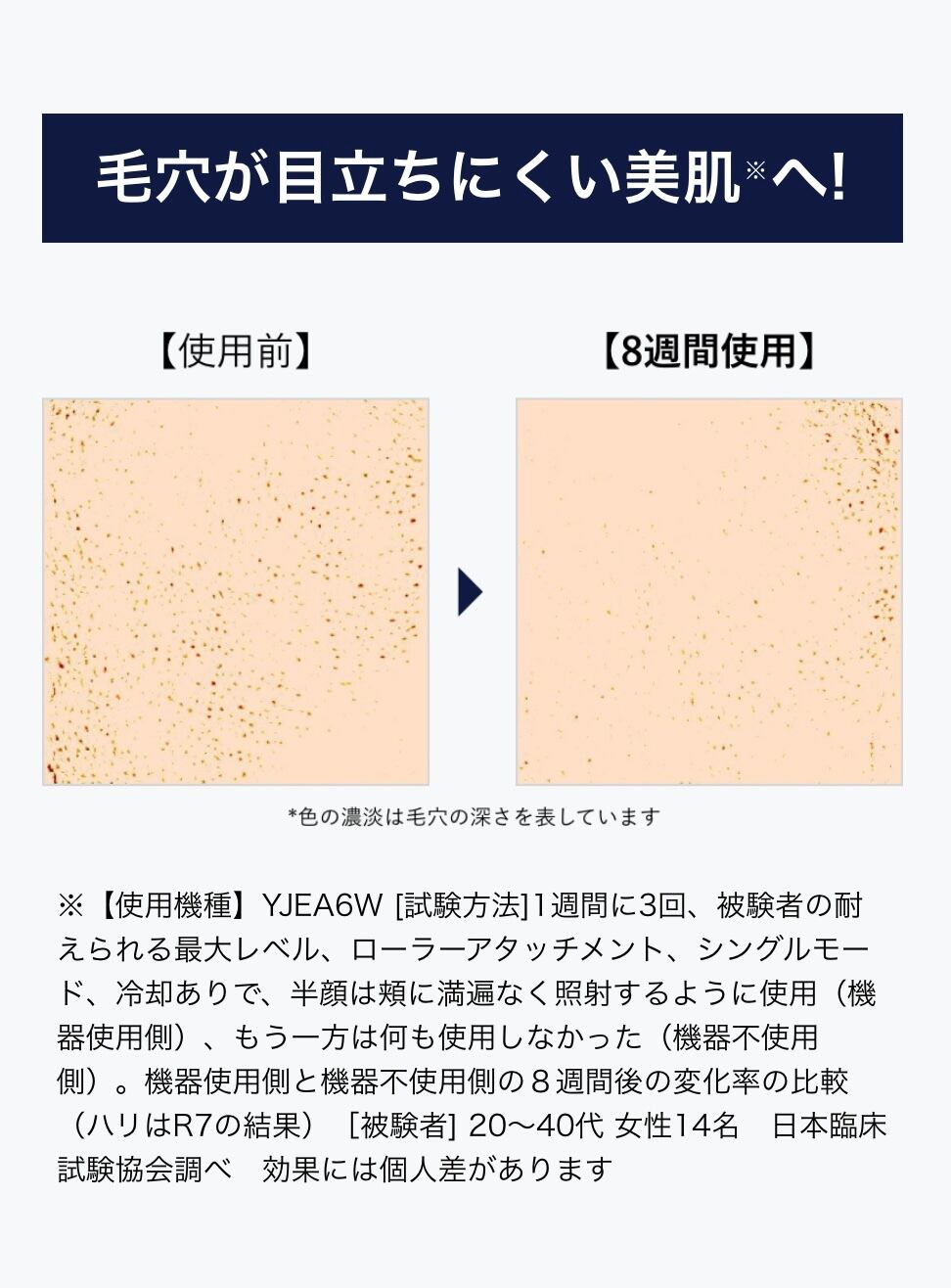 ⚫︎さらなるハイパワー×圧倒的スピードケアでき、光のパワーが従来比84%アップ。照射間隔約0.2秒の圧倒的スピードで全身のムダ毛をケアできます。