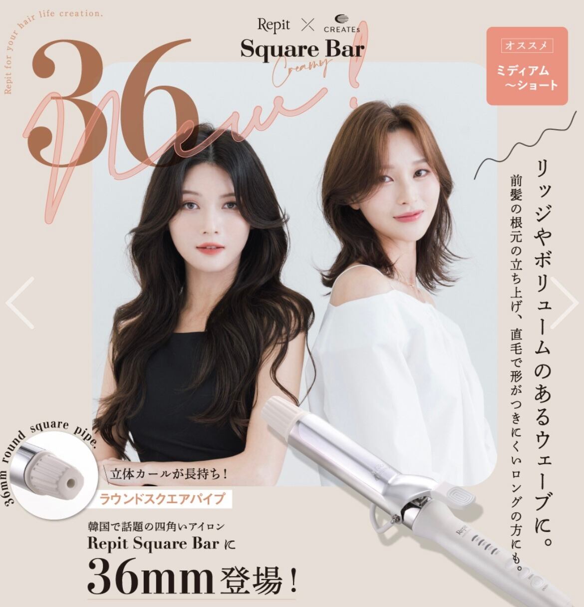 K-POPアイドルや俳優たちのヘアメイクの現場で大きなカールが簡単に作れ、また驚くほど長持ちするとその機能性が話題となったのが四角いパイプのカールアイロン ”スクエアバー”に36mmが登場!