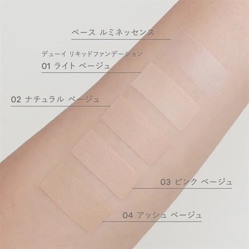 水、ラウリン酸メチルヘプチル、酸化亜鉛、酸化チタン、プロパンジオール、イソステアリン酸PEG-60グリセリル、ジグリセリン、イソステアリン酸、オプンチアフィクスインジカ種子油、ヒマワリ種子油、ローズマリー葉エキス、ラベンダー花エキス、ゼニアオイ花エキス、アカツメクサ花エキス、ハマナス花エキス、ウメ果実エキス、シャクヤク根エキス、ユズ果実エキス、ラベンダー油、ベルガモット果皮油、ニオイテンジクアオイ油、アオモジ果実油、イランイラン花油、スクワラン、トコフェロール、水酸化AI、ポリヒドロキシステアリン酸、ペンチレングリコール、ラウロイルグルタミン酸ジ(フィトステリル/オクチルドデシル)、(アクリル酸ヒドロキシエチル/アクリロイルジメチルタウリンNa)コポリマー、エチルヘキシルグリセリン、フェノキシエタノール、キサンタンガム、ポリソルベート60、イソステアリン酸ソルビタン、BG、エタノール、デキストラン、アセチルテトラペプチド-3、マイカ、タルク、酸化鉄