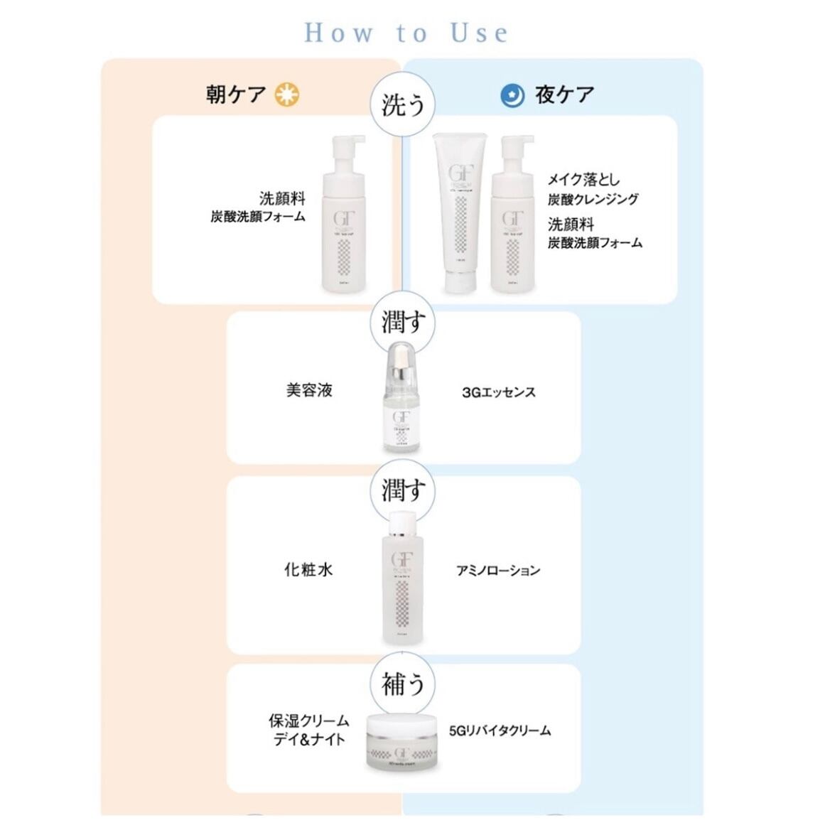 朝と夜の洗顔後に 別売の「セルケア3Gエッセンス」(美容液)を塗布した後、「セルケアEGアミノローション」(化粧水)を適量を手にとり、顔全体になじませ、小鼻や目の周りまで丁寧になじませます。