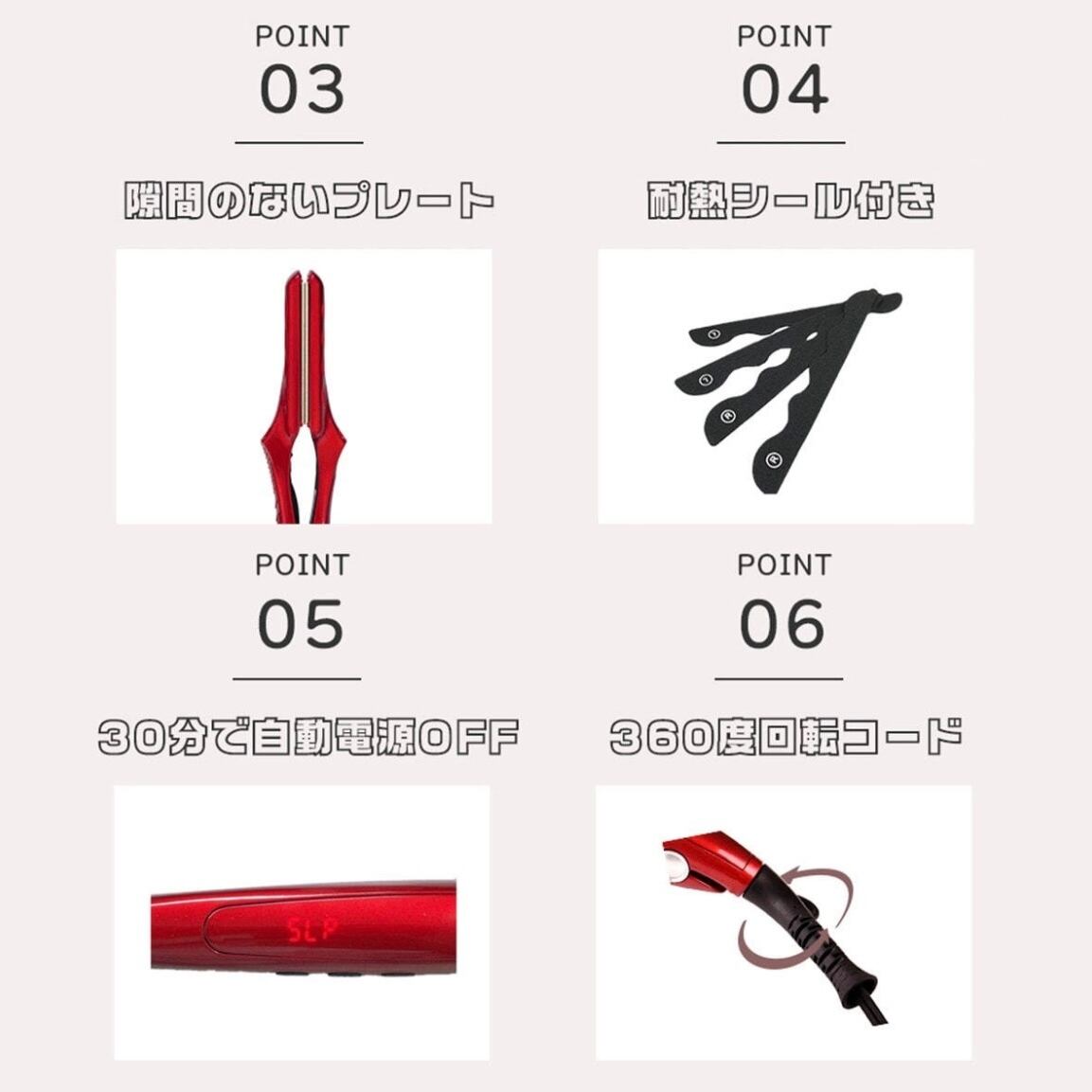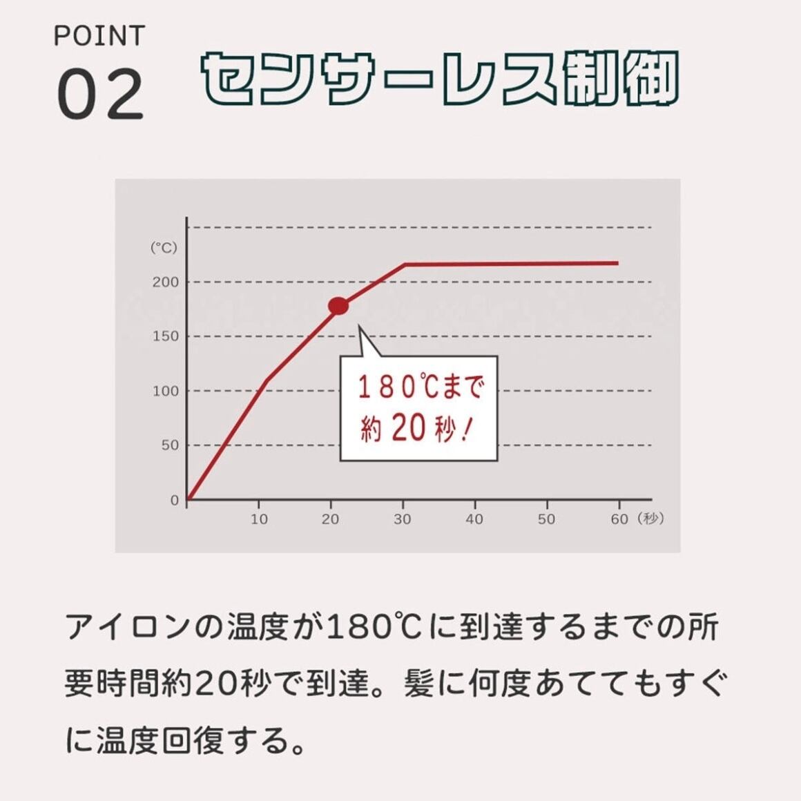 ・パワーオフ機能(30分→60分):従来のオートパワーオフ機能を働かせるための センサー(カラカラ音)がなくなり、60分後に自動で電源が切れる仕様となります。 完全デジタル化の為、継続してご使用になる場合は再度電源ボタンを押してください。温度記憶機能の追加、前回使用した温度を記憶し、電源を入れた際再度同じ温度で温度上昇を開始していきます。