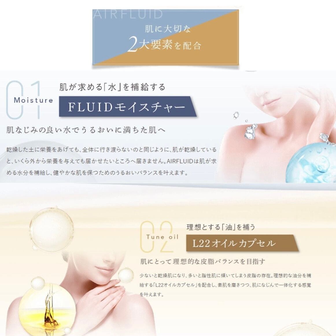 肌が求める「水」を補給するFLUIDモイスチャーと、理想とする「油」を補うL22オイルカプセルを採用。
