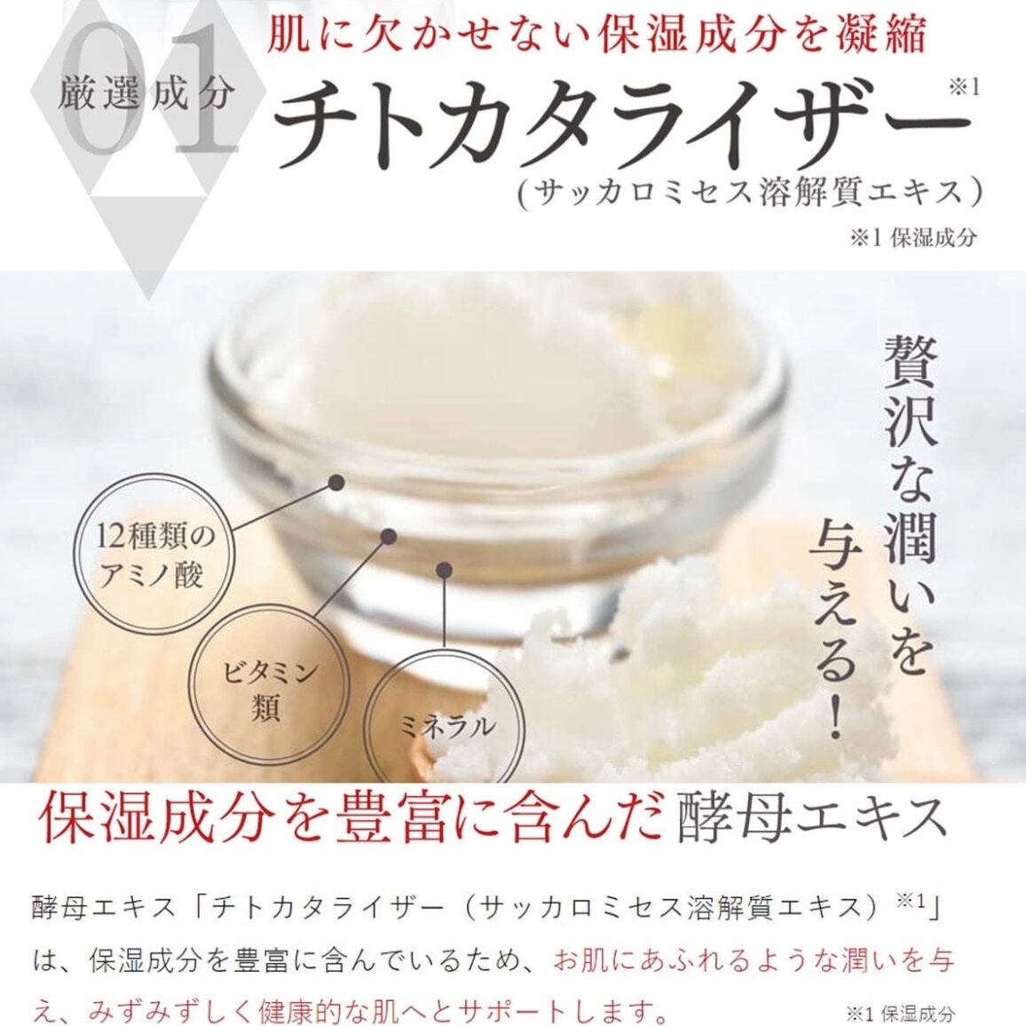 肌に欠かせない保湿成分「チトカタライザー」配合。