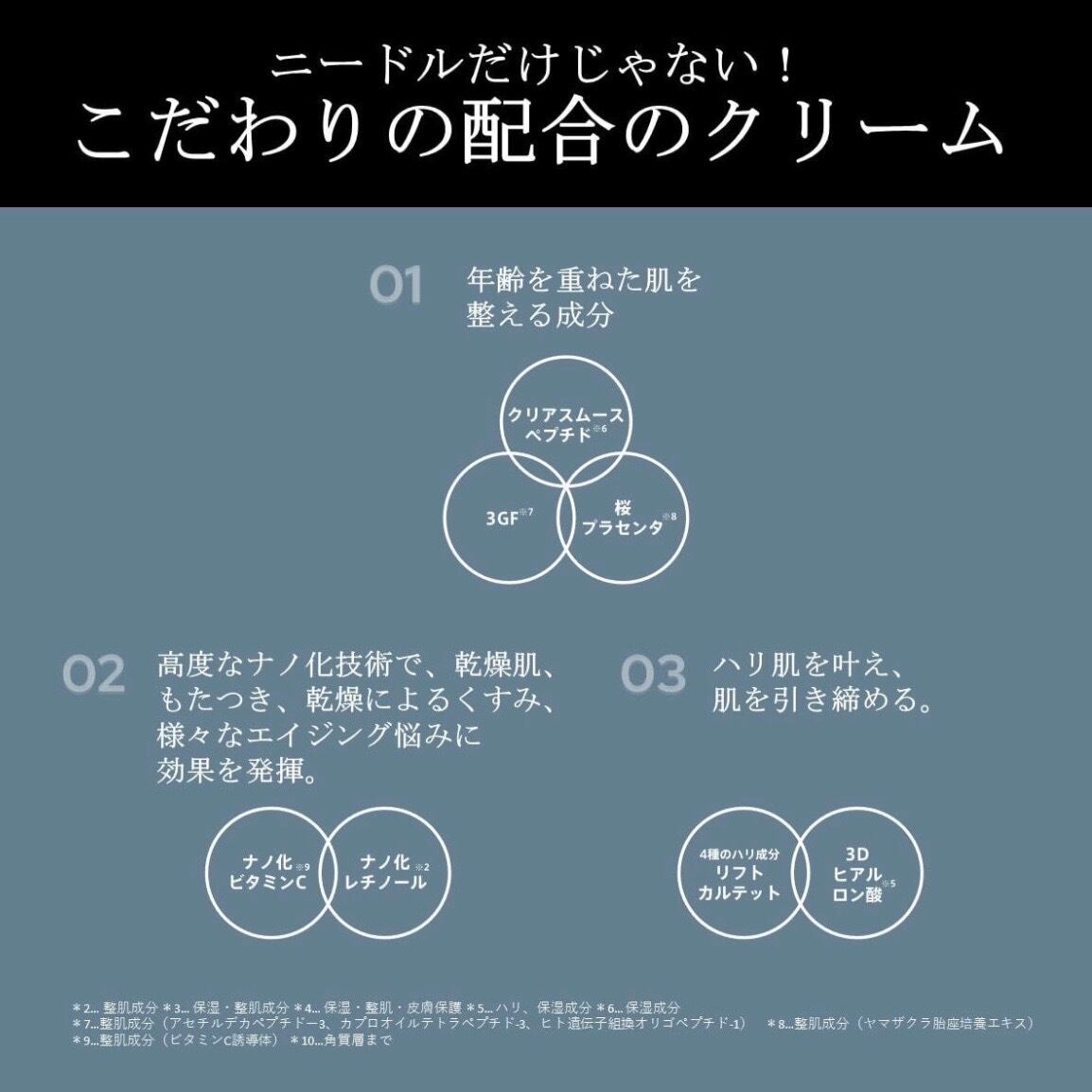 250万本*1のマイクロニードル*2と純金24K*2配合。 独自処方の美容成分がお肌にダイレクトに届き*3、刺激的な使い心地にあなたもきっと手ごたえを感じるはず。