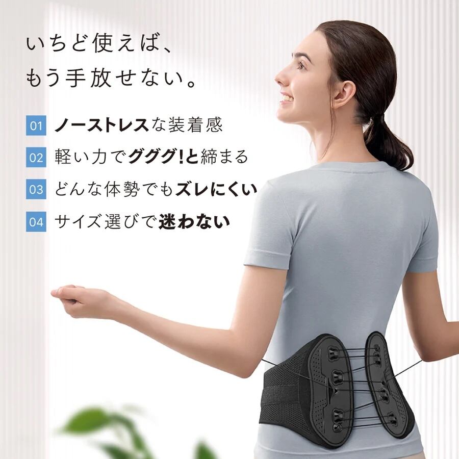 つけた瞬間、腰の驚きの安定感。この1台で腰回りの悩みをケア。<超軽量腰ベルト>