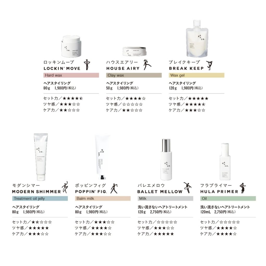 適量を手のひらでよくのばしてから、乾いた髪になじませスタイリングします。